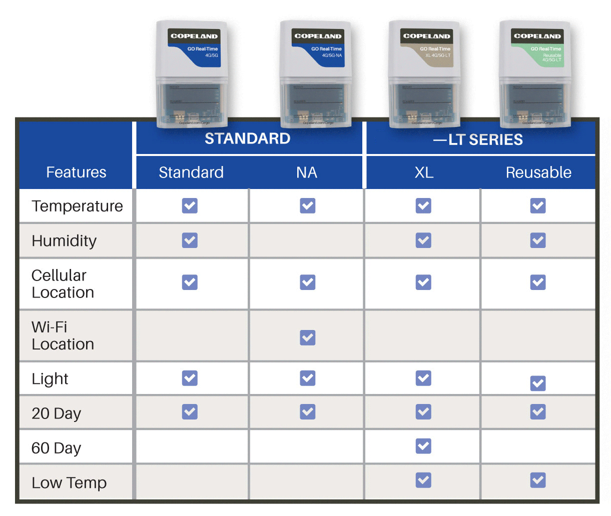 To help ensure the quality and safety of perishables and high-value products in transit, we provide the actionable data you need to streamline your supply chain, maximize perishable freshness, and make critical business decisions. Copeland tracking devices are a convenient method to track perishable shipments and obtain visibility of shipment and temperature data. Cargo tracking devices improve operational efficiency, enhance transparency, and promote food quality and safety.