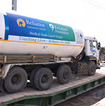 The pandemic has created a dearth of medical oxygen in the country. To help India overcome the scarcity, facilities at the Jamnagar refineries have been repurposed to deliver 1,000 MT of medicalgrade oxygen per day to be supplied to states, which is expected to benefit over 1,00,000 people per day. This makes it one of the largest producers of medical-grade oxygen from a single location in the country. Reliance engineers are making smart logistical modifications to rail and road transport to overcome bottlenecks and ensure oxygen reaches those in need.